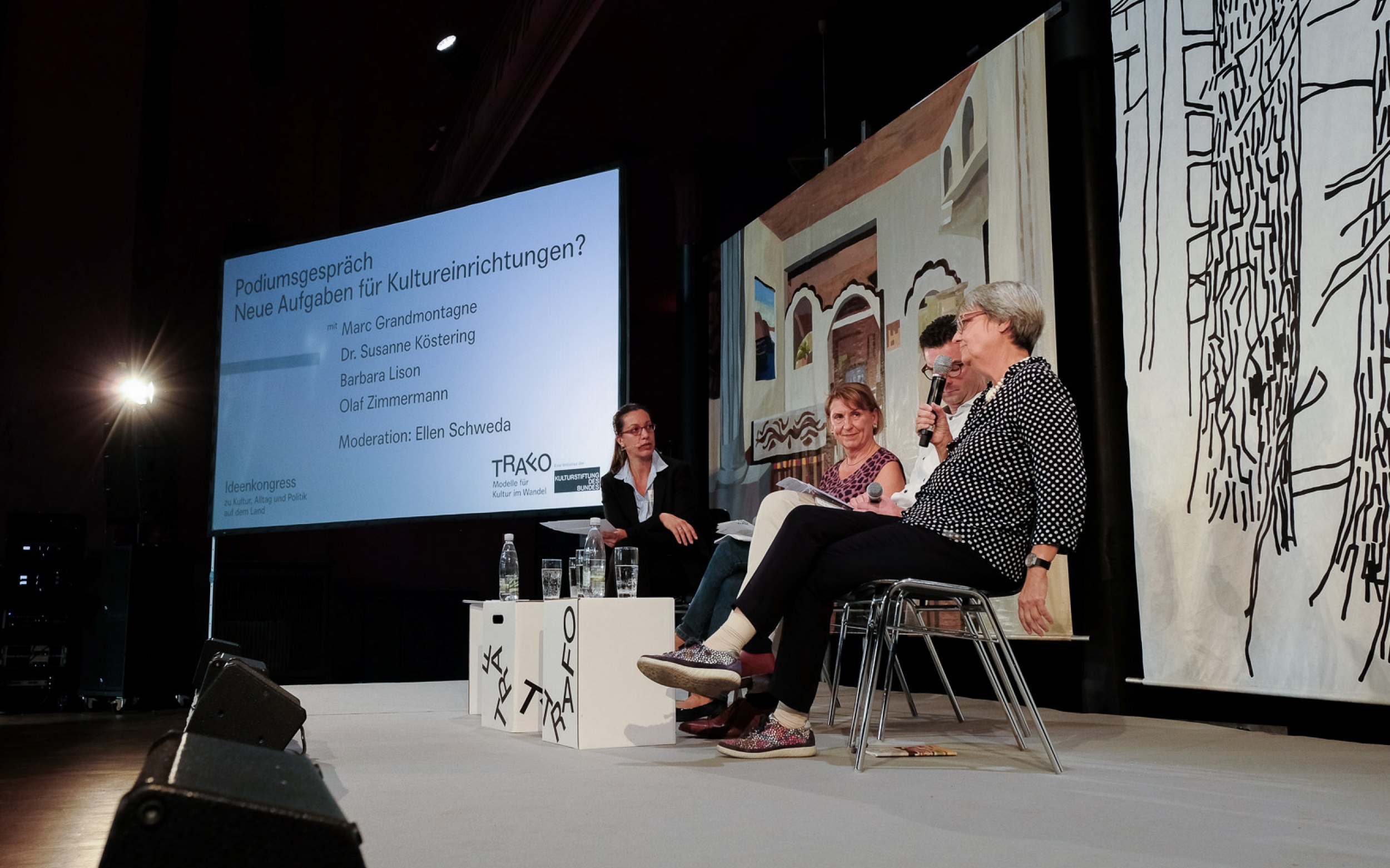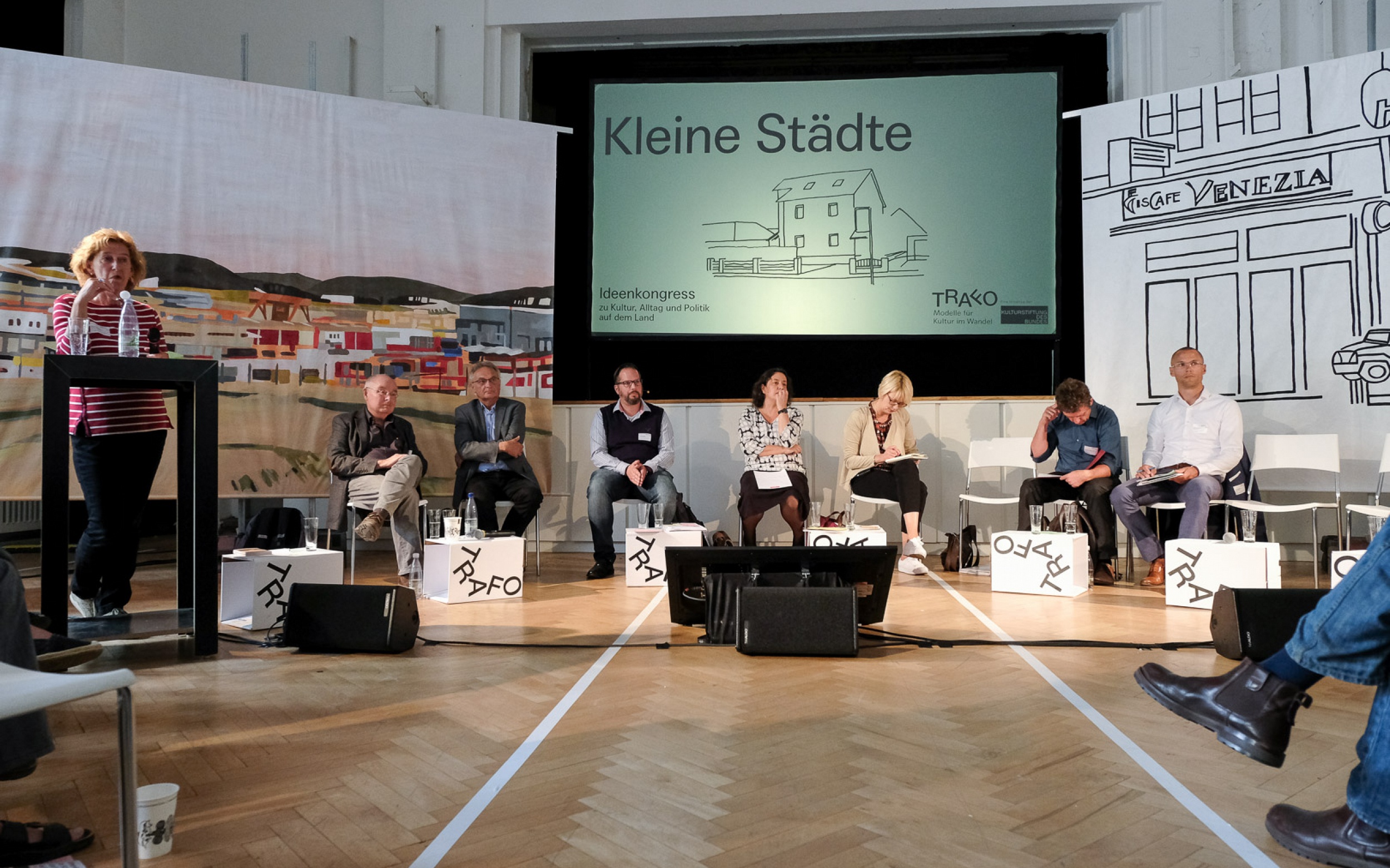 Das Herzstück des Ideenkongresses waren vier sogenannte Themenräume zu den Schwerpunkten „Neue Aufgaben“, „Perspektive Land“, „Kulturförderung“ und „Kleine Städte“, die sich aus unterschiedlichen Perspektiven dem Land und seinen kulturellen Einrichtungen genähert haben.