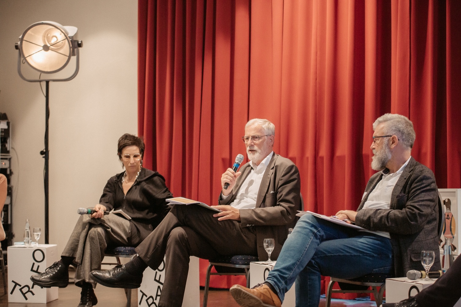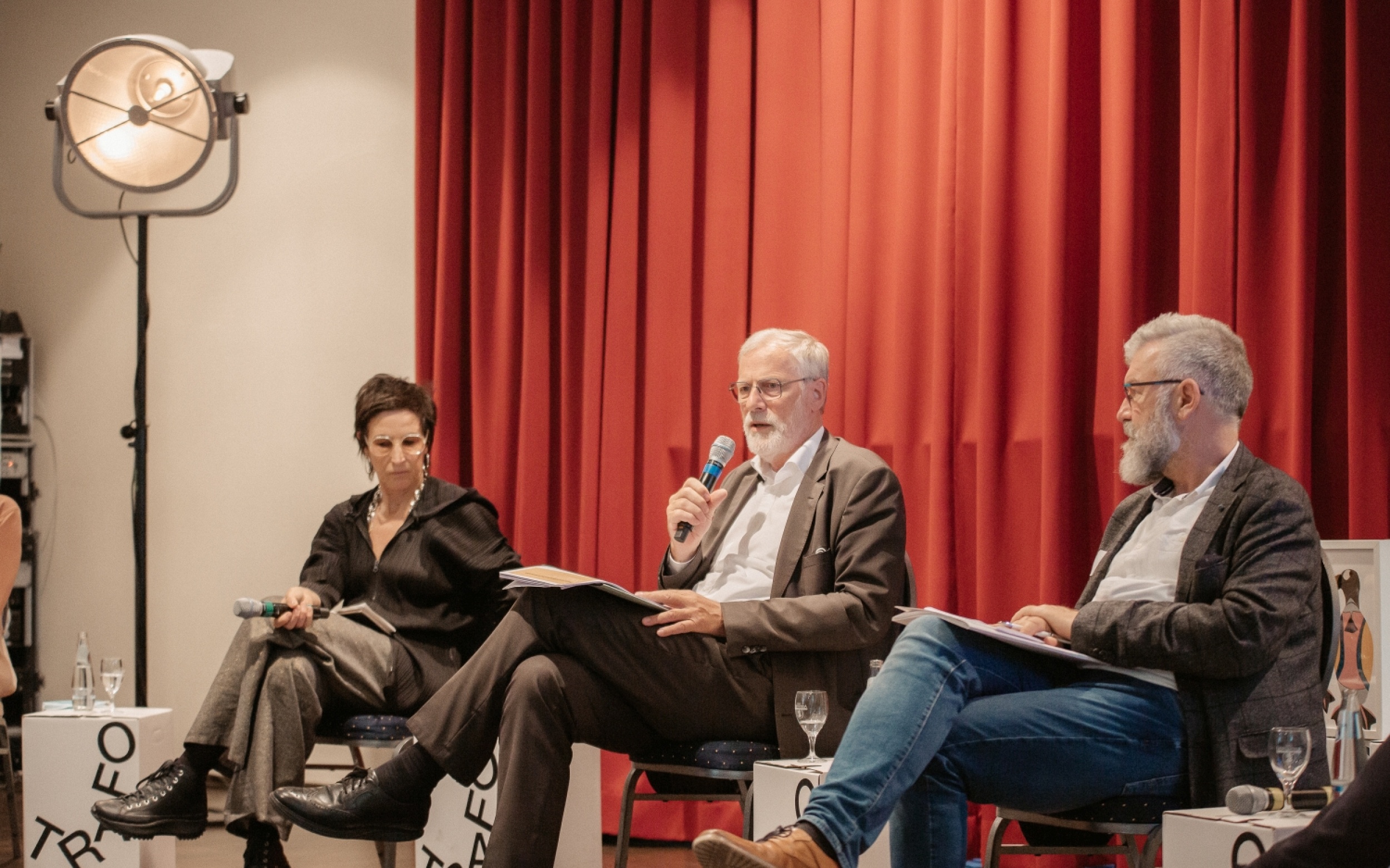Es diskutierten Rainer Robra, Staatsminister und Chef der Staatskanzlei sowie Europaminister und Kulturminister des Landes Sachsen-Anhalt, Hortensia Völckers, Künstlerische Direktorin der Kulturstiftung des Bundes, Uwe Holz, Kulturamtsleiter im Kreis Anhalt-Bitterfeld, Sabine Radtke, Vertreterin der Kulturinitiative Köthen 17_23 und Elke Witt, Geschäftsführerin der WelterbeRegion Anhalt-Dessau-Wittenberg. Moderiert wurde die Runde von Harald Asel, Kulturredakteur beim rbb. Das Podium wurde live übertragen: