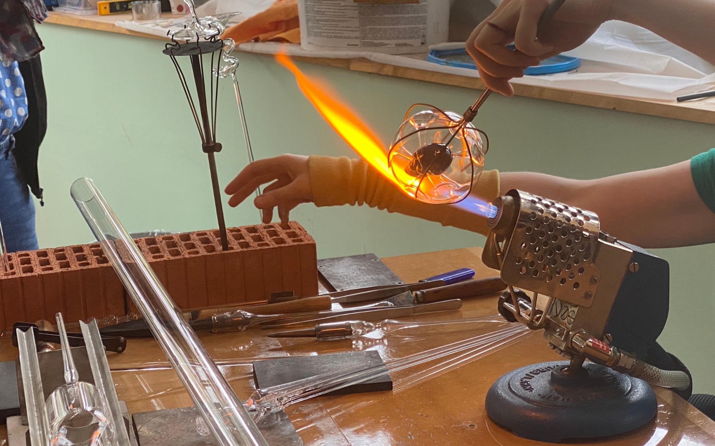 Unsere erste Station führt uns in den Thüringer Wald nach Lauscha, wo das Kulturkollektiv Goetheschule e.V. seit 2014 eine zuvor leerstehende Schule saniert und als Atelier- und Veranstaltungshaus kulturell wiederbelebt. „Diese kleine Stadt hier ist unglaublich kreativ“, erzählt uns Toni Köhler-Terz, Gründungsmitglied und Vorstandsvorsitzender des Vereins. Zunächst aus der Motivation heraus entstanden, sich mit Ateliers einen eigenen künstlerischen Freiraum zu schaffen, sanierten und renovierten ein Kreis von Aktiven das alte Schulgebäude in Eigenregie, mit finanzieller Unterstützung der Stadt. „Man sollte nicht dagegen arbeiten, sondern einfach mal machen lassen. Irgendwann wirkt es auf die Gemeinschaft zurück.“, resümiert vor Ort der Bürgermeister von Lauscha, Norbert Zitzmann. Das zahlt sich aus, denn mittlerweile finden regelmäßig öffentliche Veranstaltungen statt und die alte Goetheschule ist auch überregional für seine internationale Künstlerresidenz und das Glassymposium bekannt. Getragen wird das Projekt von viel ehrenamtlichen Engagement, allen voran von Toni Köhler-Terz. Sein Ziel ist es nun nach der Corona-Zeit die Goetheschule „als Ort der Gemeinschaft“ wieder sichtbar zu machen.