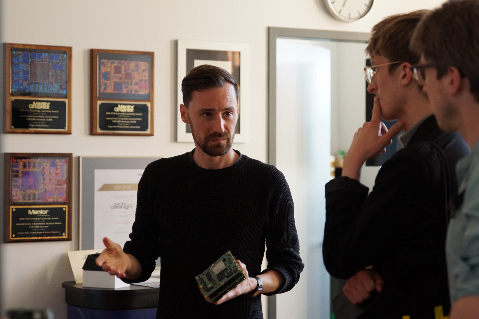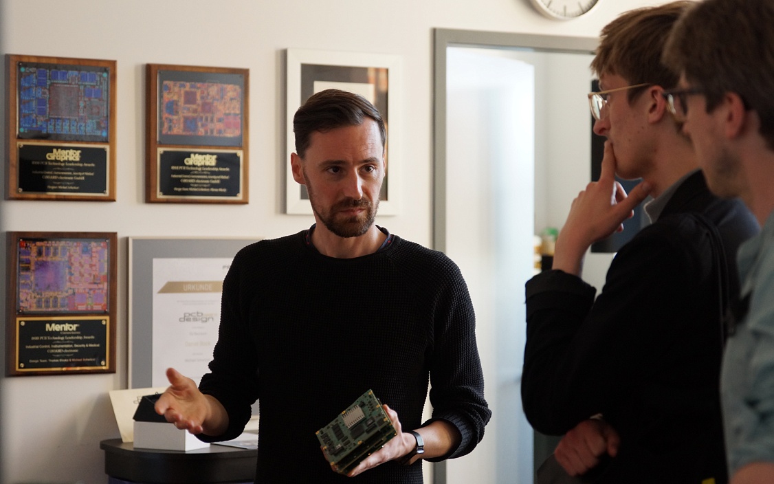 Irgendwie bringt er all das unter einen Hut. Während er uns herumführt und wir auf komplexe Schaltpläne blicken, erzählt er uns gelassen von seinen vielen Rollen.