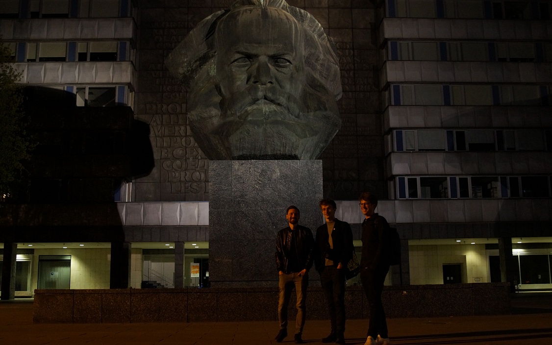 Der Abend endet mit einer Stadtrundfahrt. Der Platz vor der Karl-Marx-Büste ist verwaist bis auf die Personen, die sich heute zum ersten Mal begegnet sind – und doch schon so viel teilen.
