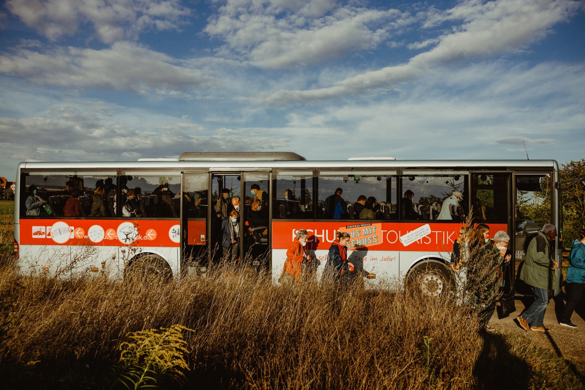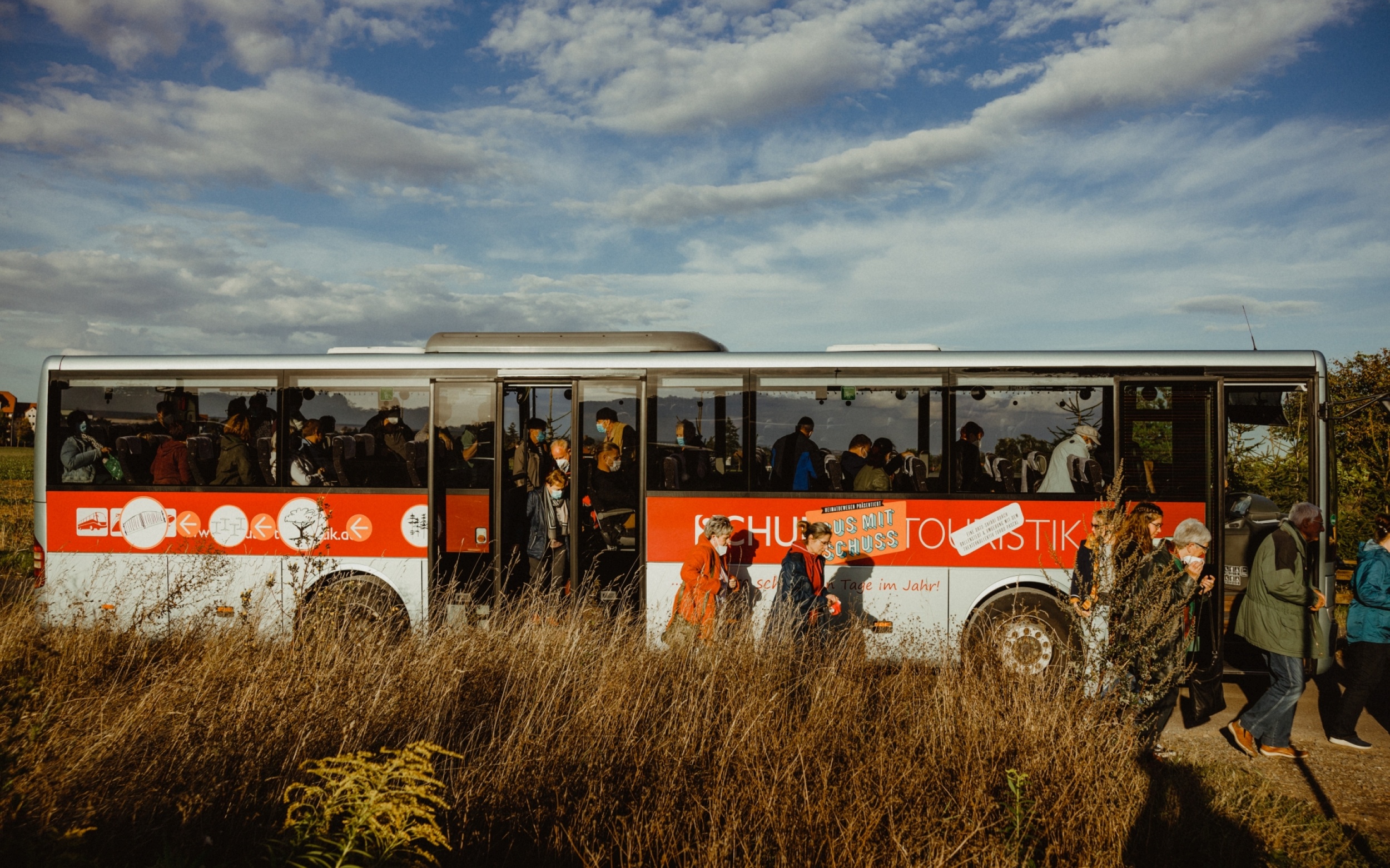 Mit Blick aus den Fenstern direkt auf ein Thema losfahren: Die Theaterschaffenden von Turbo Pascal haben mit dem Projekt „Bus mit Schuss“ das Format der performativen Kaffeefahrt erfunden. Die Reisegruppe fährt dabei von Ort zu Ort und lernt verschiedene Aspekte eines Themas kennen. Für den Ideenkongress werden sie in und um Chemnitz eine neue Route planen. Die Frage, auf die die Reisenden zusteuern: Was sind eigentlich gleichwertige Lebensverhältnisse?