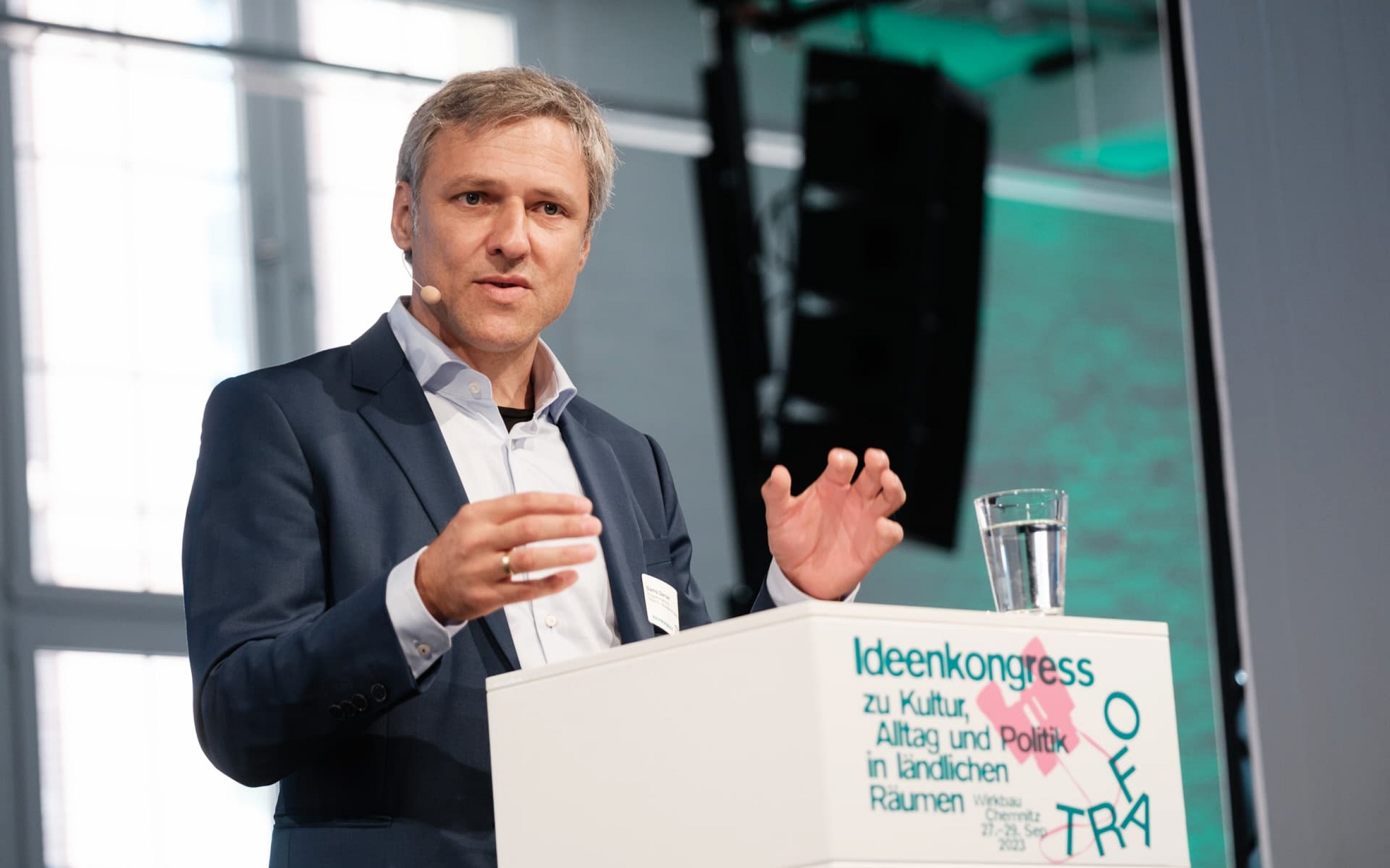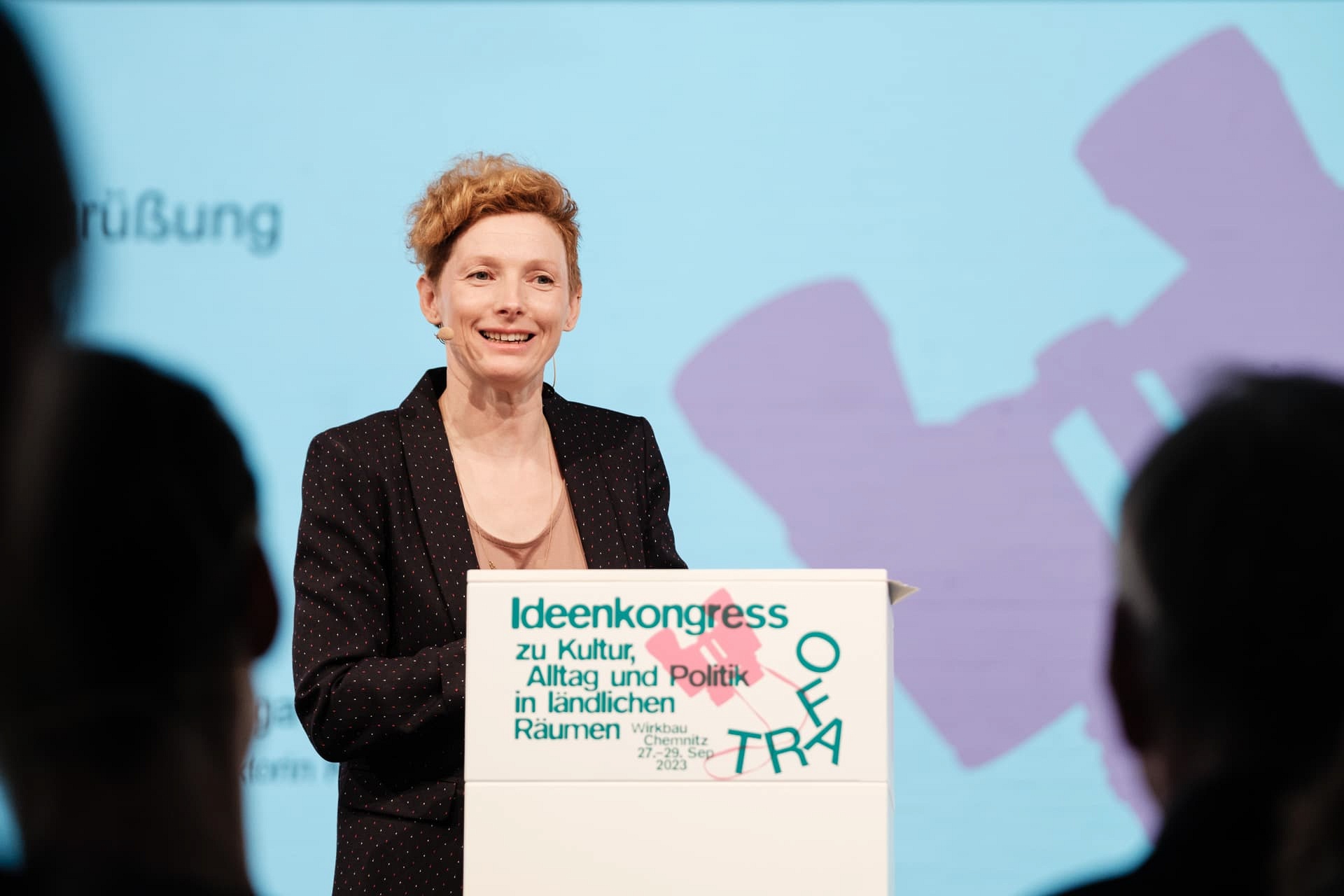 Der Ideenkongress wurde eröffnet von einer Konzertperformance des PODIUM Esslingen mit Paula Kallies. Es folgten Grußworte von Katarzyna Wielga-Skolimowska, Künstlerische Direktion der Kulturstiftung des Bundes, und Samo Darian, Programmleiter TRAFO - Modelle für Kultur im Wandel. Ein Faktencheck beleuchtete anschließend Annahmen und Realitäten, Mythen und Idealisierungen in Bezug auf das Leben in ländlichen Räumen.