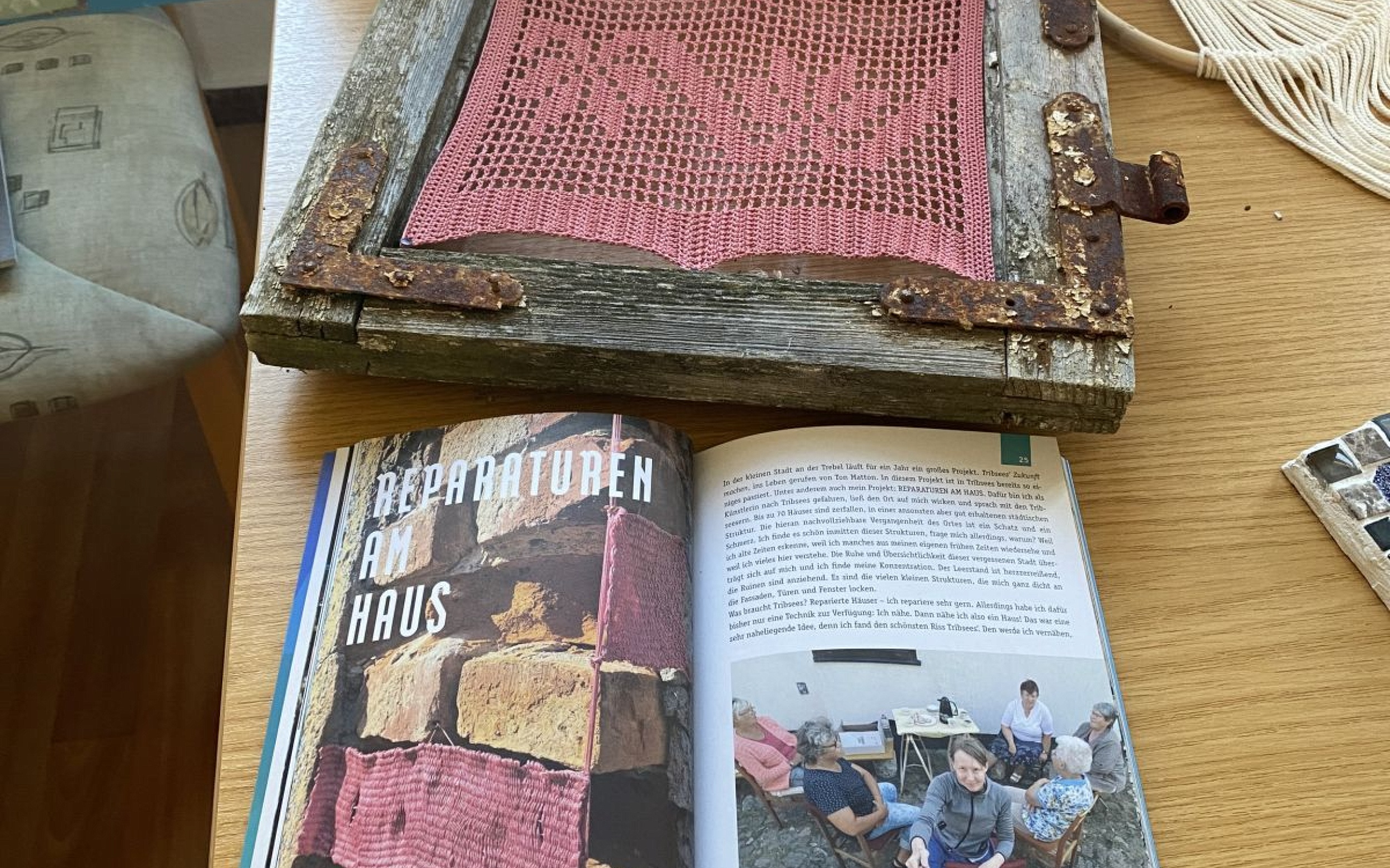 Als der Bürgermeister 2021 das künstlerische Beteiligungsprojekt nach Tribsees holte, um gemeinsam mit Künstlerinnen und Künstlern, Studierenden der Universität Linz und ihrem Professor Ton Matton sowie der Projektleiterin Sofie Wagner die vielen leerstehenden Häuser im Ort zu bespielen, ließen sich die Frauen des Frauenvereins dazu überreden, gemeinsam mit Susanne Gabler ein Haus zu reparieren: im öffentlichen Raum und mit Nadel und Faden. Nachdem die anfängliche Skepsis der Begeisterung gewichen war, wuchs der Mut, sich mit diesem Projekt auch den Fragen der Passanten zu stellen und Gespräche zu führen.