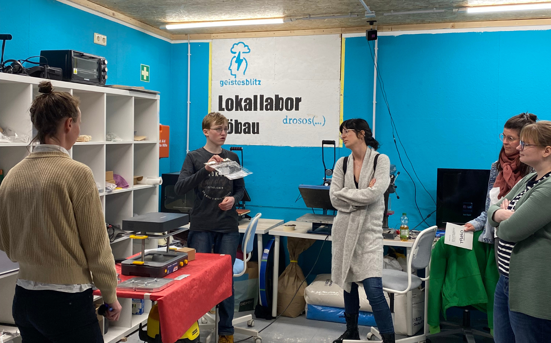 Wie kann es gelingen, dass an diesen Orten insbesondere auch Jugendperspektiven Raum gegeben wird? Wie Selbstorganisation mustergültig funktioniert, berichteten die verantwortlichen Jugendlichen im „Makerspace Geistesblitz“ vor Ort im LÖBAULEBT e.V. Auf Idee der Jugendlichen hin ist selbstorgansiert ein basisdemokratisch strukturierter Ort entstanden, an dem u.a. mit 3D-Druckern gearbeitet werden kann. Jugendliche bieten hier Workshops an und versuchen mit verschiedensten Angeboten, einen Raum für alle zu schaffen. Einig sind sich Max Hilse und die anderen Jugendlichen des Makerspace, dass die Idee für ein Projekt aus Eigeninitiative entstehen und der Raum wirklich selbstverwaltet werden muss, damit die Jugendlichen diesen als ihren Raum ansehen und entsprechend Verantwortung übernehmen.
