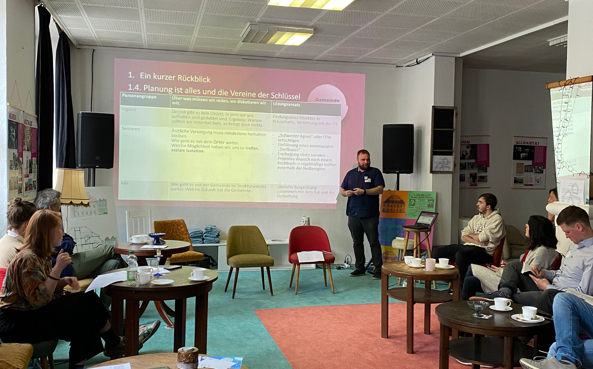 Begrüßt wurden wir am ersten Tag im LÖBAULEBT e.V. von René Seidel, dem Vorsitzenden des Vereines und Staatssekretärin Dr. Gesine Märtens, Sächsisches Staatsministerium der Justiz und für Demokratie, Europa und Gleichstellung. „Da wo Kultur nur Funktion ist, geht sie verloren,“ sagt sie und hebt die besondere Bedeutung der verschiedenen „Orte der Demokratie“ hervor.