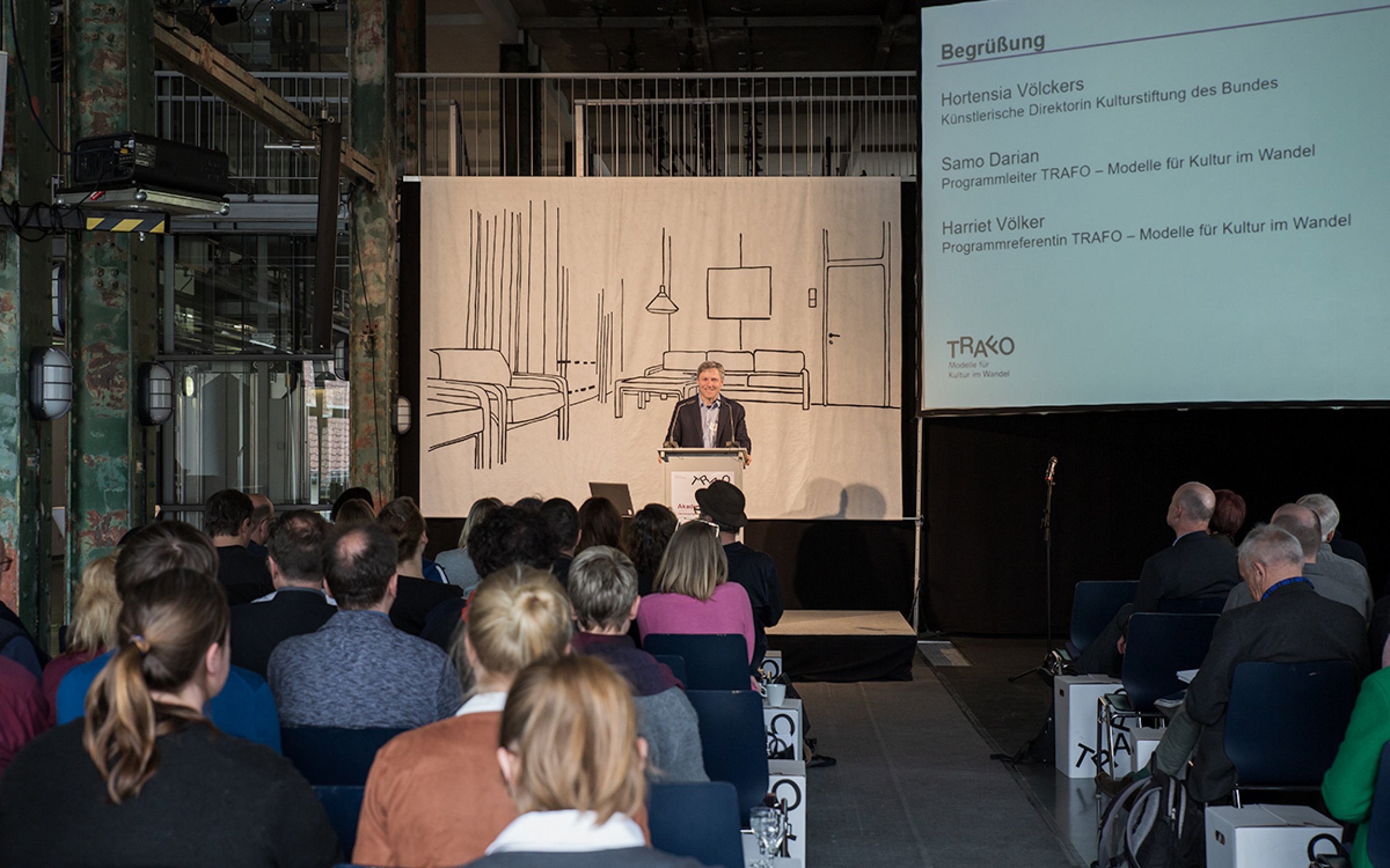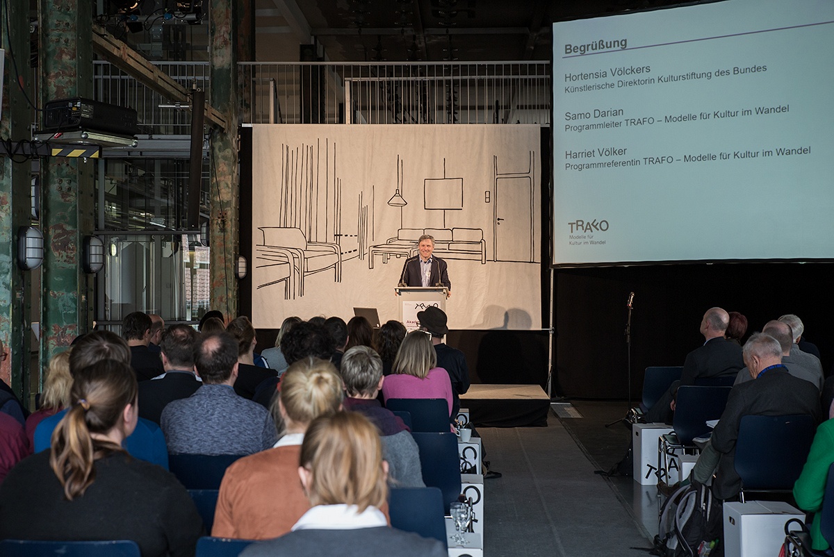 Der Kulturentwicklungsplaner Dr. Patrick S. Föhl beschäftigte sich in seinem Vortrag auf der TRAFO-Akademie mit dem Thema Transformation im Kulturbereich. Dabei untersuchte er anhand von Beispielen aus seiner Praxis, wie die Kommunikation zwischen unterschiedlichen Akteuren in Transformationsprozessen gelingen kann und welche Übersetzungsleistungen zwischen Kultur, Politik und Verwaltung dafür nötig sind.