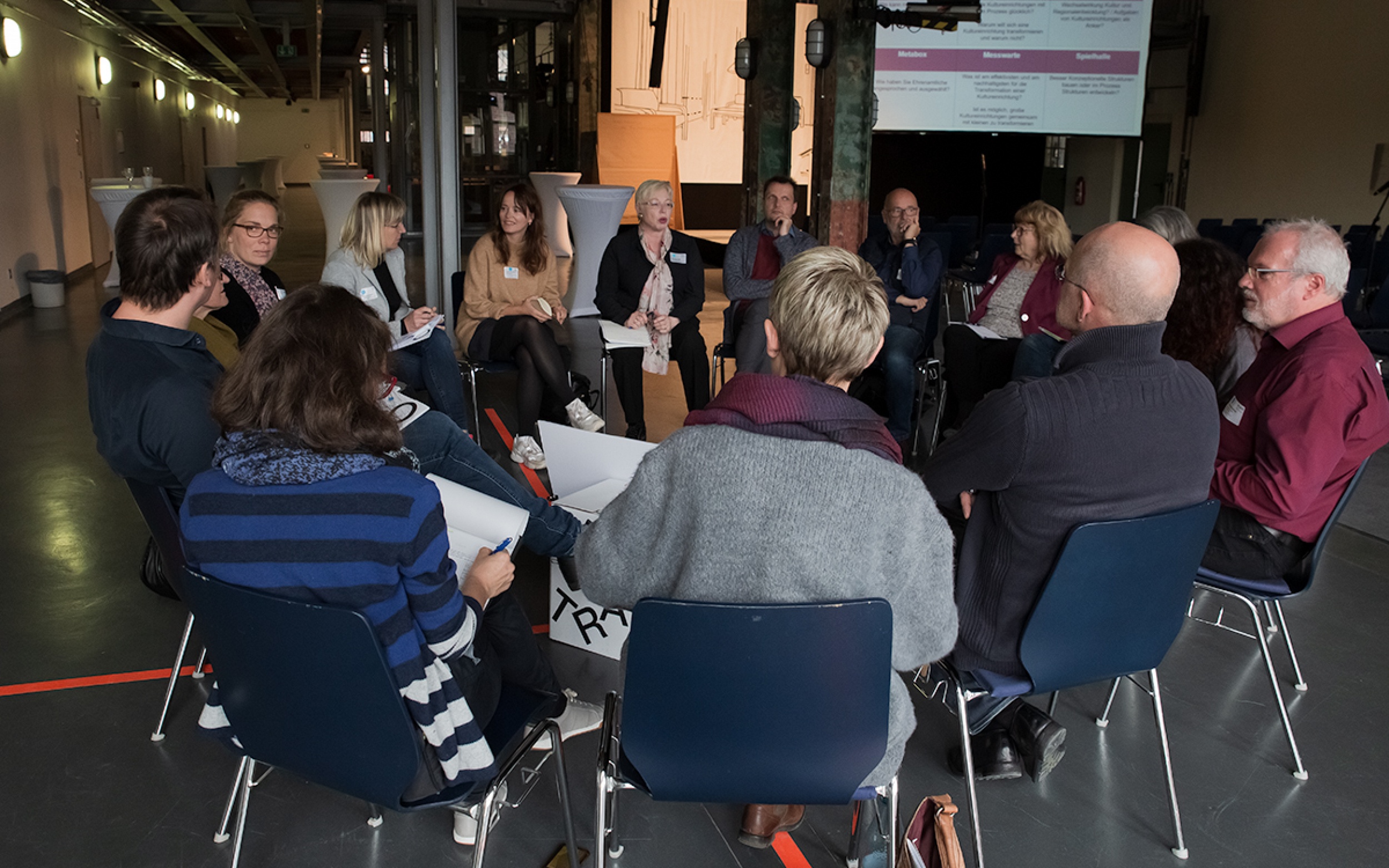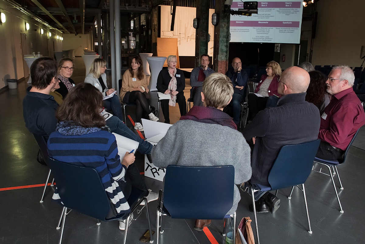Im Rahmen der Akademie wurden daher einerseits Zugänge zu kulturellen Transformationsprozessen mit künstlerischen Mitteln erprobt, zum einen kulturpolitische Fragestellungen und Argumentationen in den Blick genommen. Im Mittelpunkt stand der Austausch des Erfahrungswissens zwischen den TRAFO-Projekten der ersten und zweiten Förderperiode. Die neuen Regionen hatten die Möglichkeit, konkrete Fragen zu stellen, um die gesammelten Erfahrungen in ihre nächsten Projektschritte einfließen zu lassen.