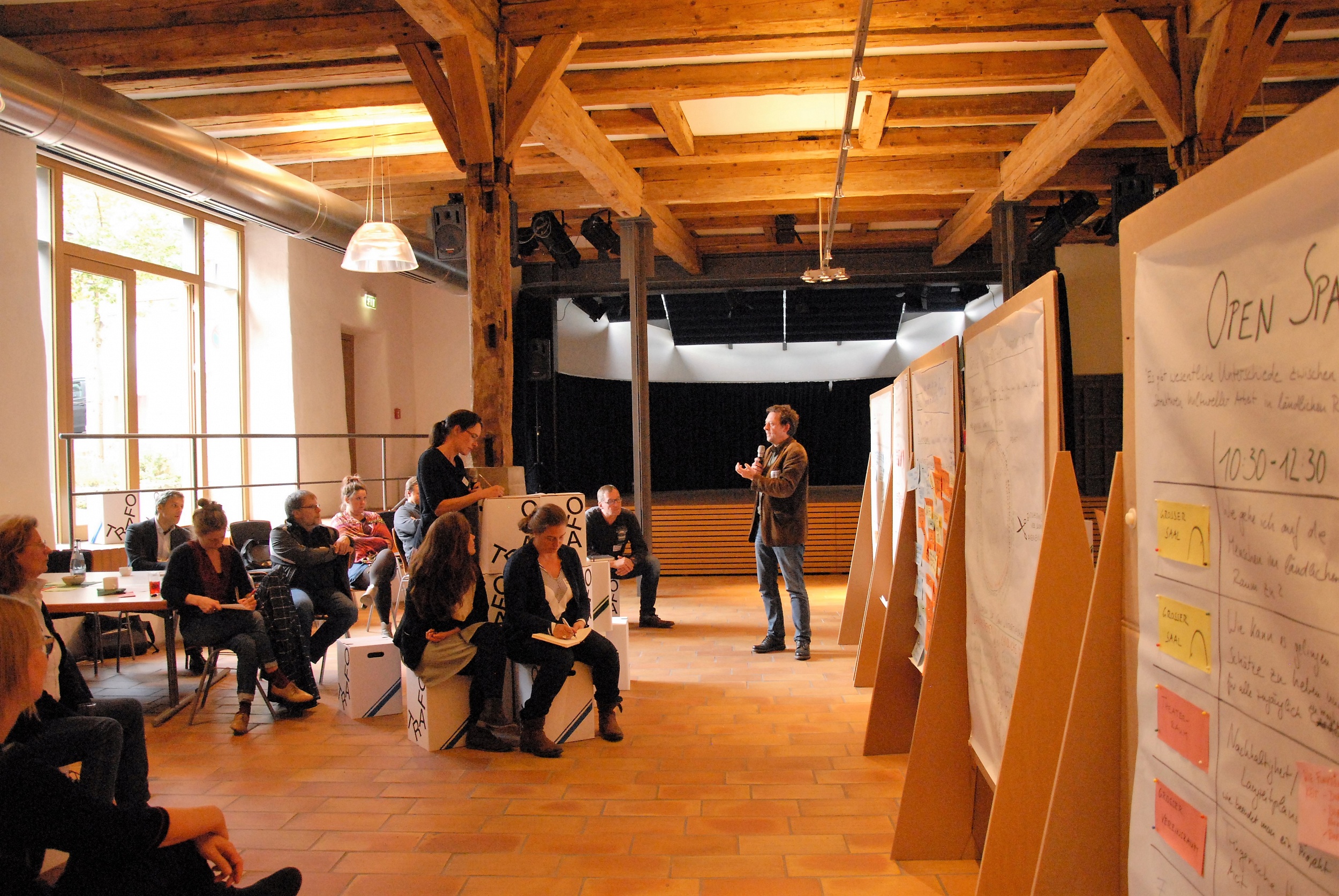 Am zweiten Tag der Akademie bearbeiteten die Teilnehmenden im Open Space-Format die Fragen, wie man das Besondere und Spezifische der Kulturarbeit in ländlichen Regionen sichtbar machen kann. Wer prägt aus welcher Perspektive heraus die Kulturarbeit in ländlichen Räumen? Welche Interessen haben die Kulturakteure vor Ort? Welche Rolle übernehmen Künstlerinnen? Wie werden die unterschiedlichen Angebote von den Menschen der Region aufgenommen? Welche besonderen Schätze sind in ländlichen Räumen vorhanden? Wie können sie gehoben werden? Dabei ging es immer wieder darum zu klären, mit welchen Qualitätskriterien an die Kulturarbeit herangegangen wird und wer diese bestimmt.