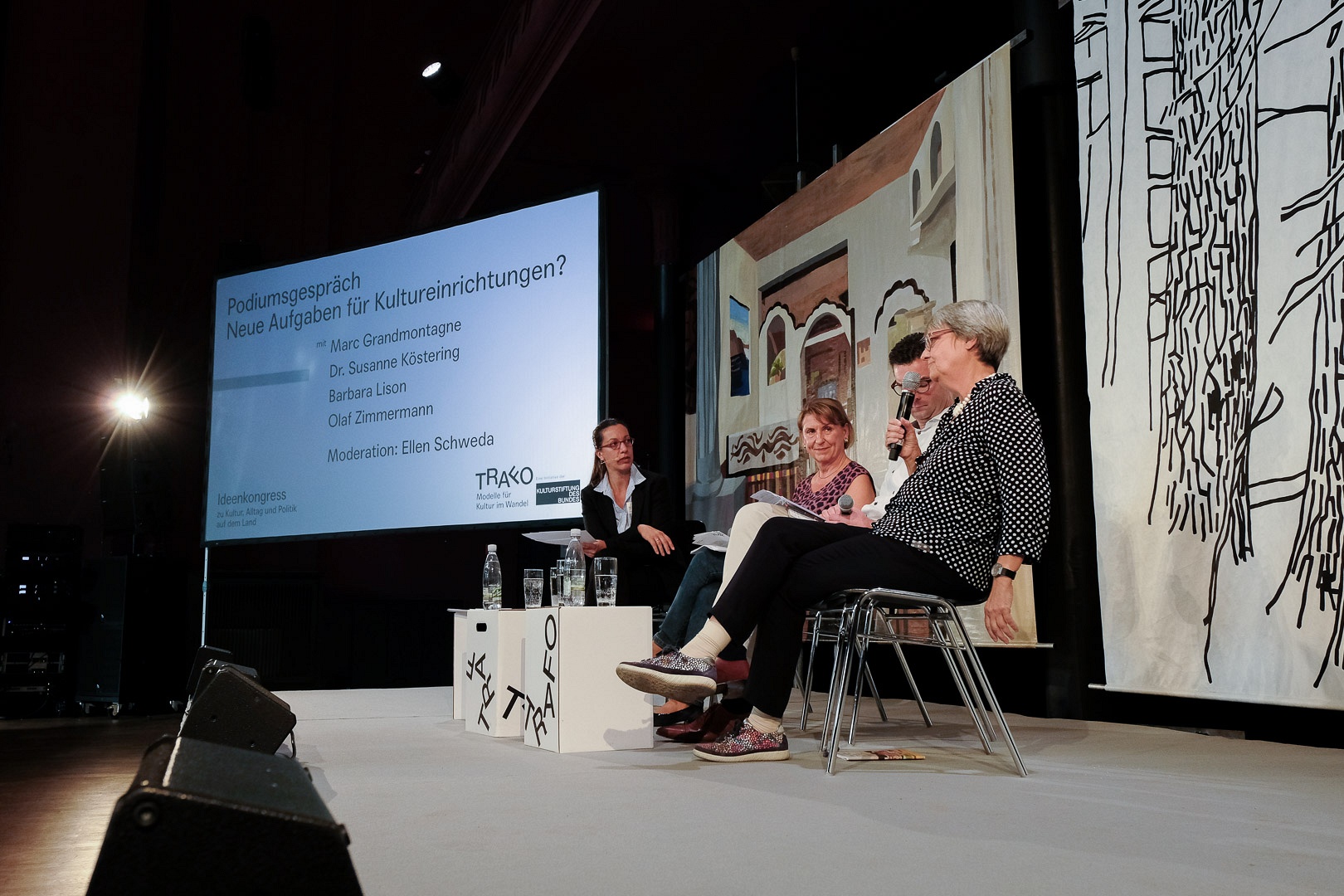 Das Herzstück des Ideenkongresses waren vier sogenannte Themenräume zu den Schwerpunkten „Neue Aufgaben“, „Perspektive Land“, „Kulturförderung“ und „Kleine Städte“, die sich aus unterschiedlichen Perspektiven dem Land und seinen kulturellen Einrichtungen genähert haben.