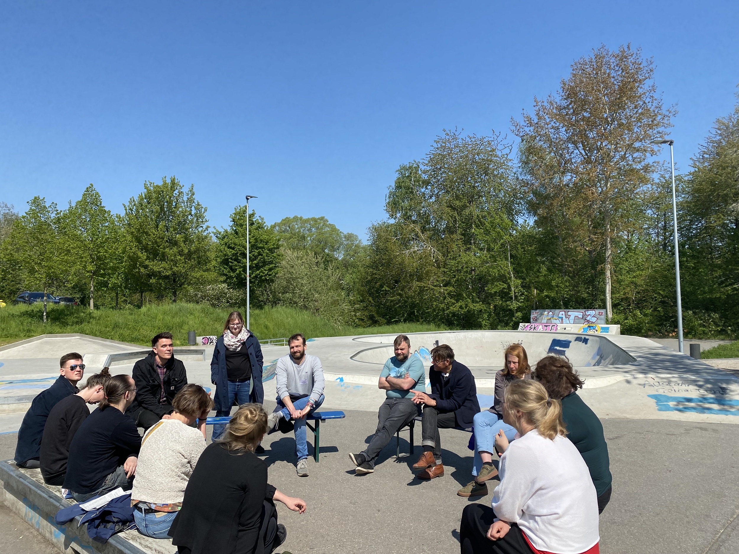 Die letzte Station der Reise war am zweiten Tag der Steinhaus Bautzen e.V., ein soziokulturelles Zentrum. Unter Beteiligung von Jugendlichen ist hier ein Skatepark entstanden, der inzwischen überregional bekannt ist und von vielen verschiedenen Gruppen genutzt wird. Im Gegensatz zu den beiden selbstverwalteten Projekten arbeiten die Jugendlichen hier mit dem Sozialarbeiter Benno Auras zusammen, der seine Aufgabe darin sieht, die Jugendlichen zu unterstützen, einen Ort zu schaffen, an den sie gerne zurückkehren. Dafür sei aus verschiedensten Gründen heraus kontinuierlich Betreuung notwendig, berichtet der Sozialarbeiter im Rahmen des abschließenden Reflexionsgespräches vor Ort auf dem Skateplatz, denn nur gemeinsam sei es möglich an der Ausbildung eines Demokratieverständnisses zu arbeiten.